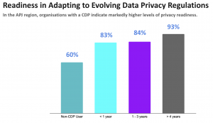 - Businesses in the APJ region will continue to zero in on privacy compliance: 93% of seasoned CDP users in the APJ region are confident in the tool’s ability to support privacy compliance. The same proportion (93%) of tenured APJ CDP users indicate readiness in adapting to new and evolving data privacy regulations. With third-party cookie deprecation, signal loss and strengthening global data privacy laws, businesses also reported a stronger focus on first-party data and identity data strategies.