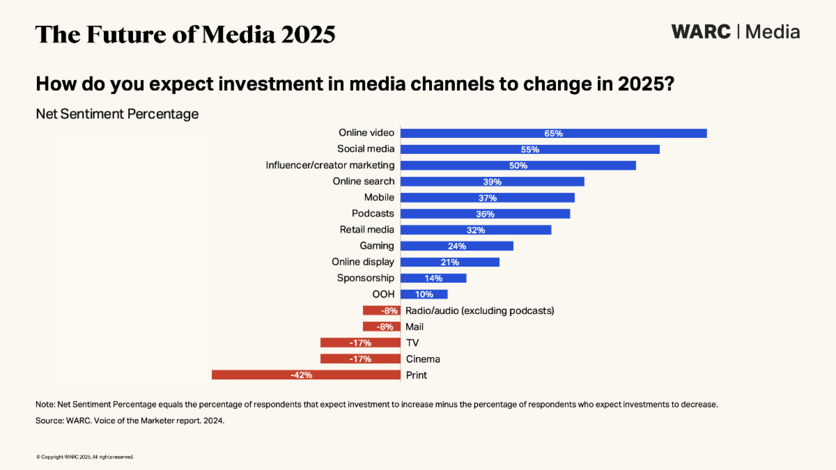 The Future of Media 2025 is based on data and insights from WARC, including WARC’s Marketer’s Toolkit global survey of 1000+ marketing executives, and external research. It is part of WARC’s Evolution of Marketing programme helping marketers address major industry shifts to drive effective marketing, and follows the recent publication of WARC’s The Voice of the Marketer 2025, The Marketer’s Toolkit 2025 and The GEISTE report.